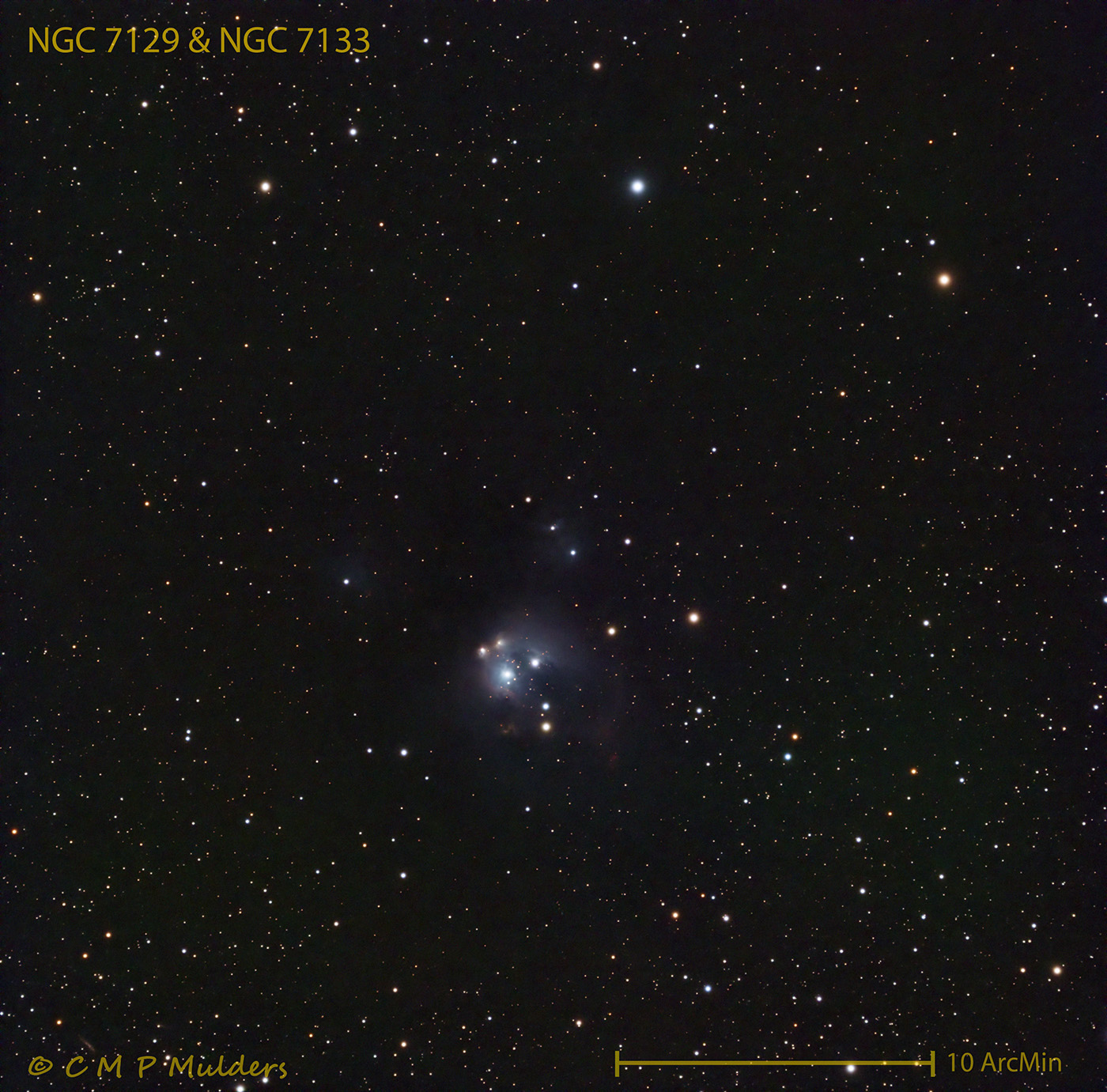 the bright reflection nebula and NGC 7129 is a small sparse open
