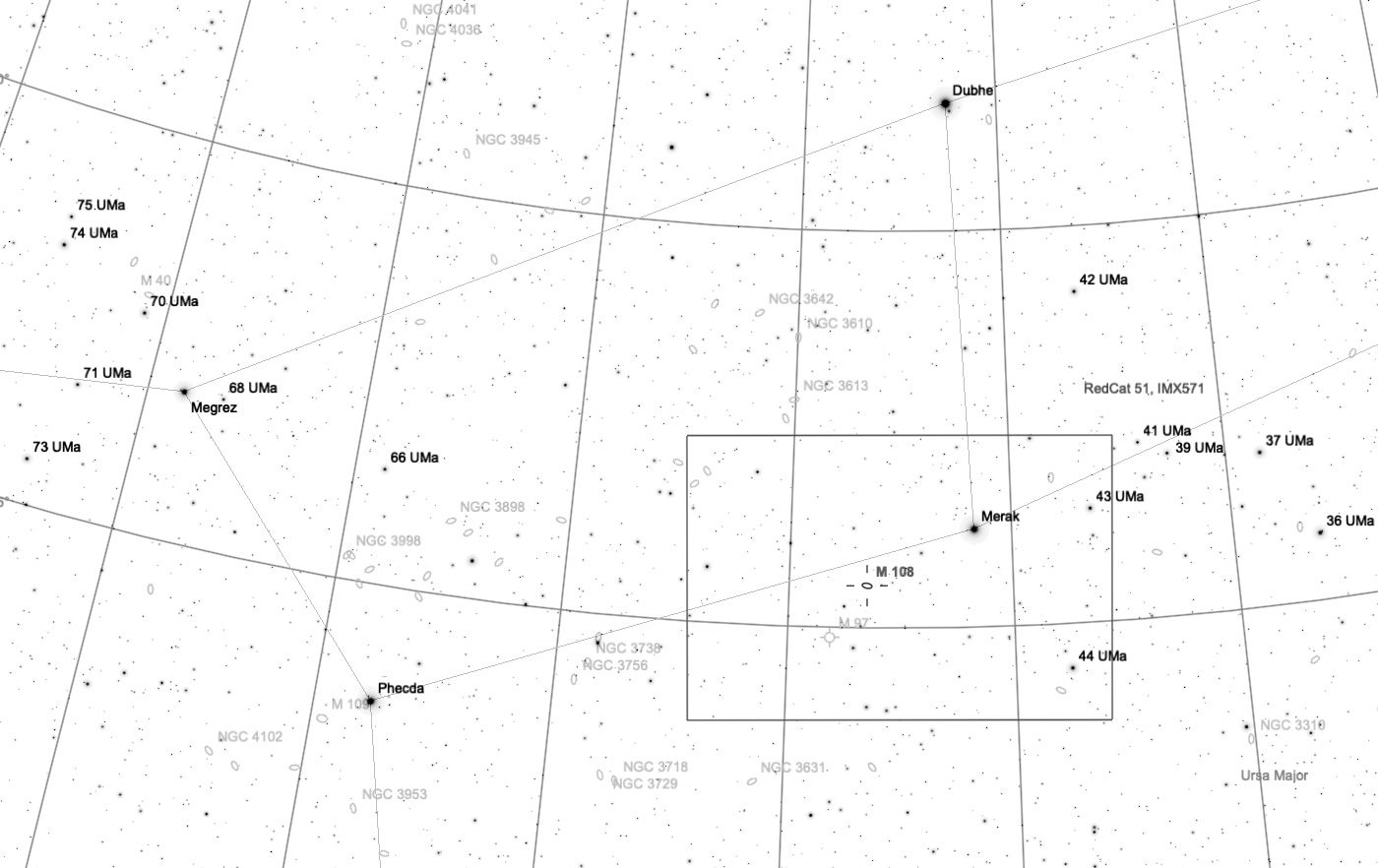 and Messier 108, a popular spiral galaxy beside M97. Merak is