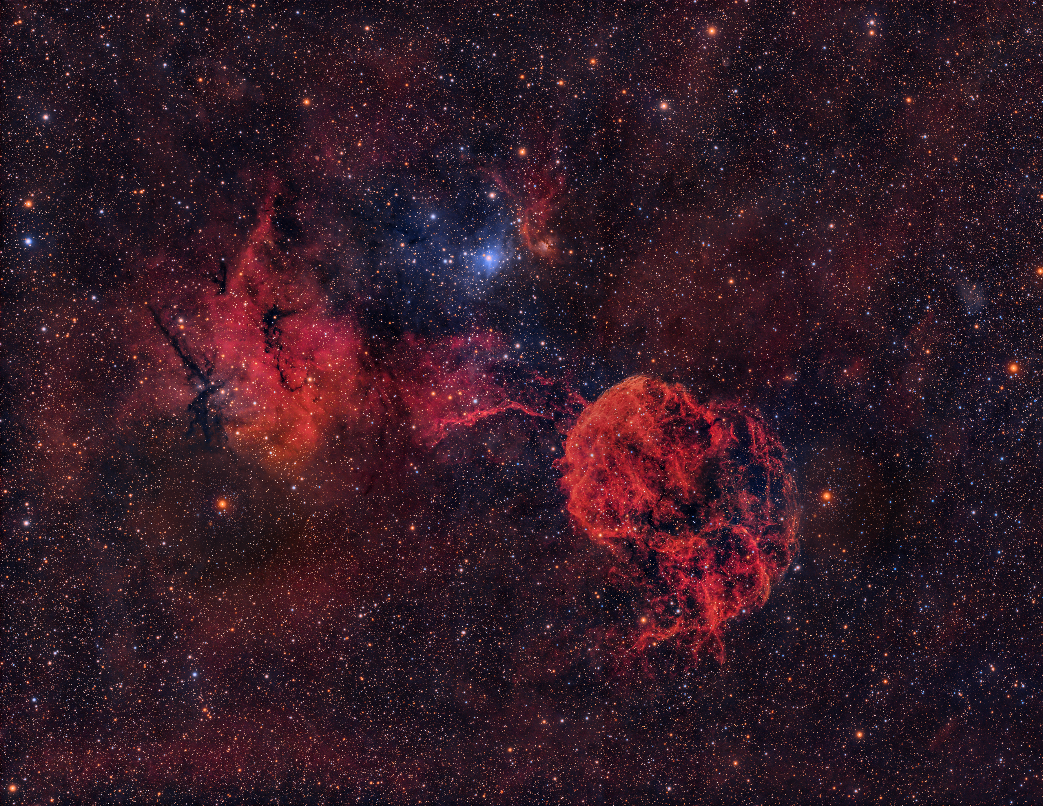 The remnant's age is still uncertain. There is some agreement that the supernova happened between 3,000 and 30,000 years ago. Near the apex of the nebula is a neutron star, relic of a SN explosion. The location in a star forming region and the presence of a neutron star favor a Type II supernova, the ultimate fate of a massive star, as the progenitor explosion.