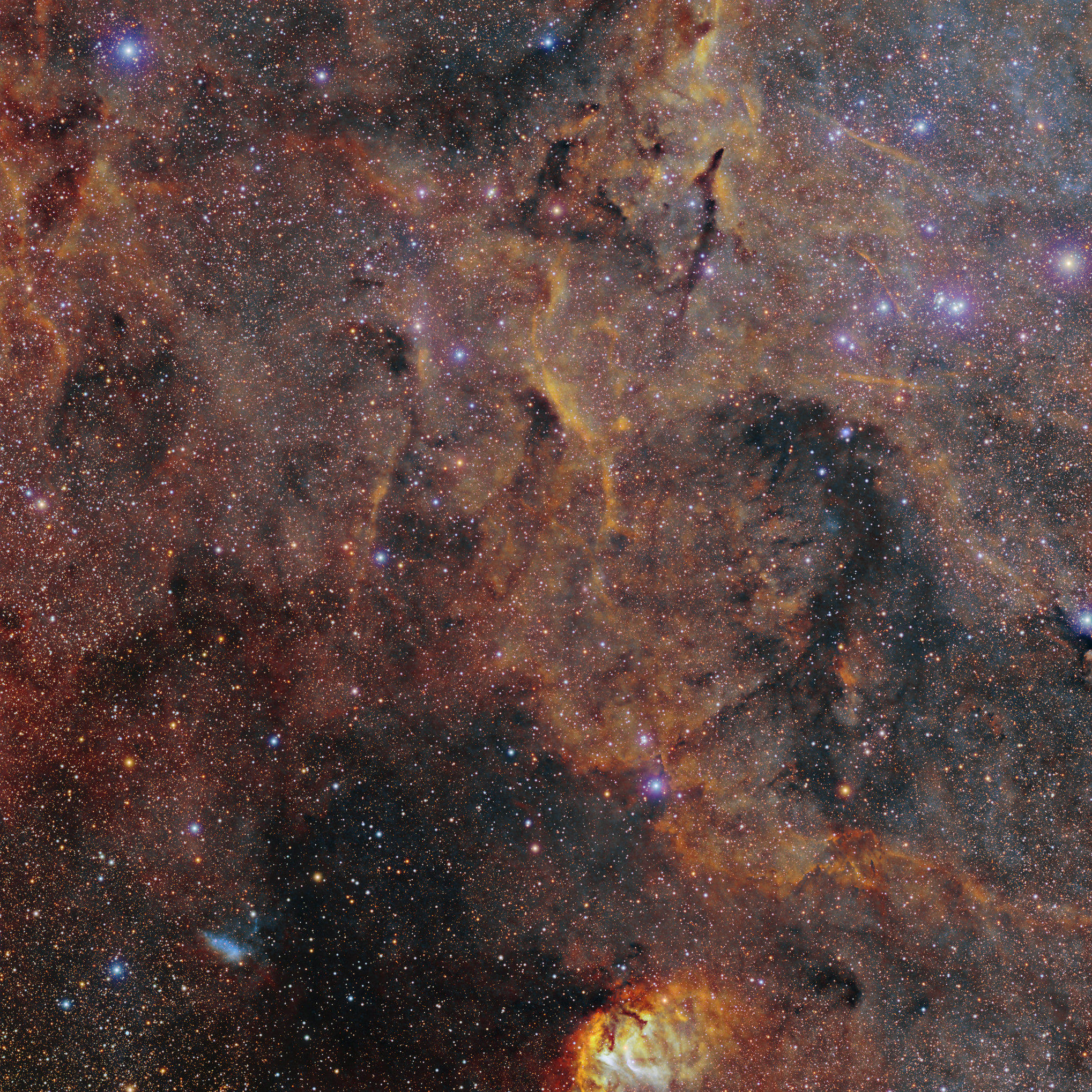 The above image is RGB overlaid on an HOO image done in PixInsight