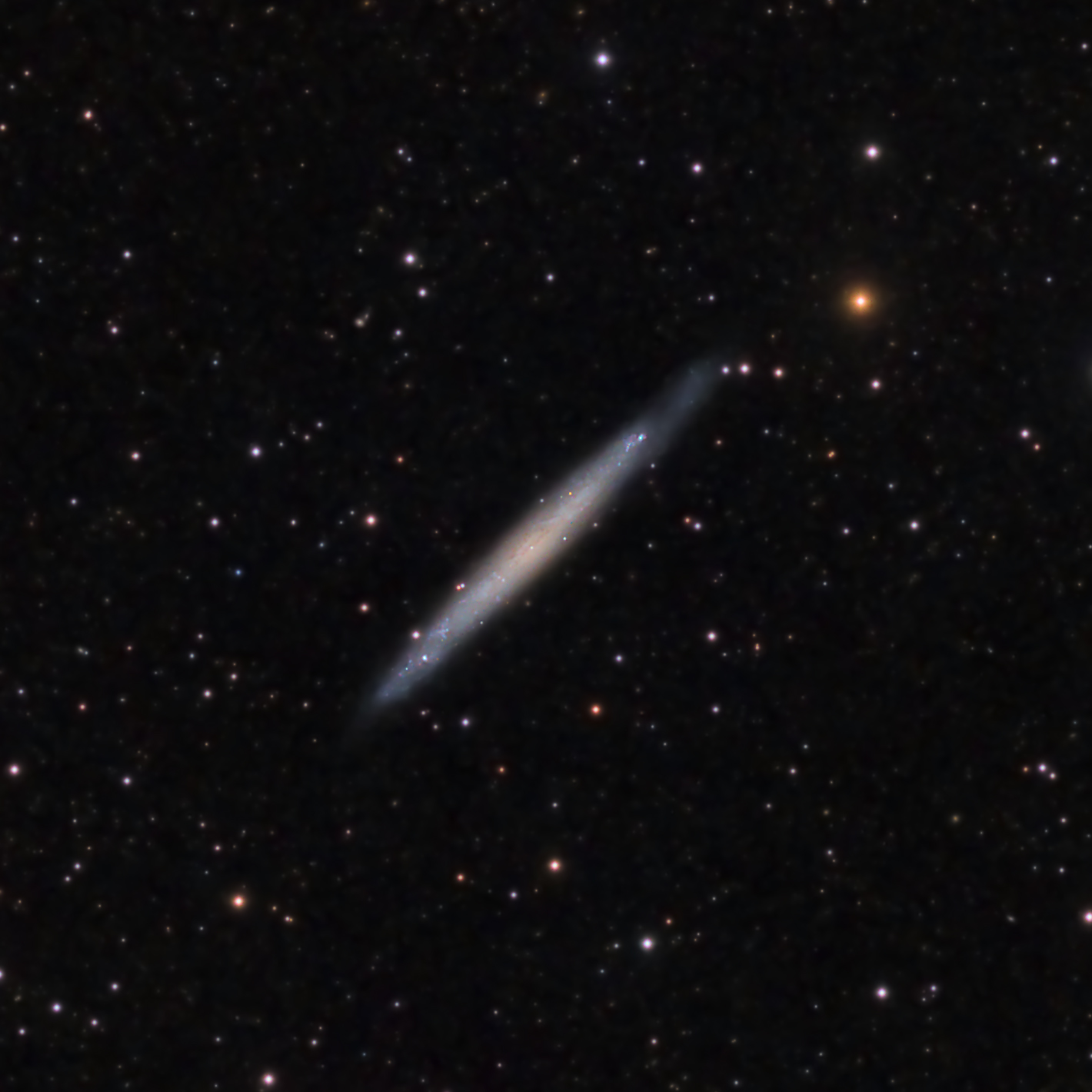 4244, also known as Caldwell 26, is an edge-on loose spiral galaxy in
