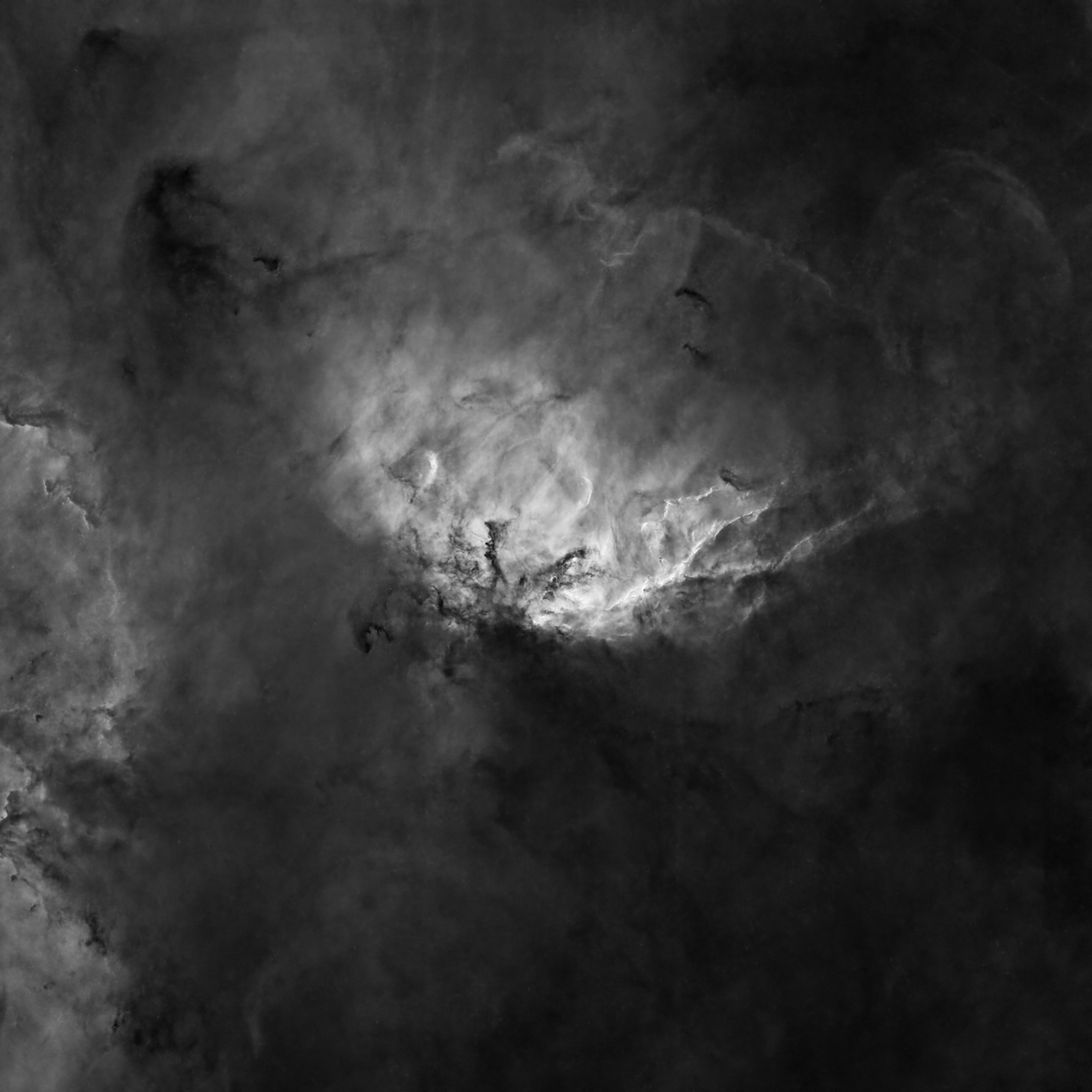 Processing: Split the RGB into channels, added the starless H-Alpha to
