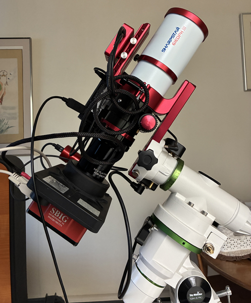 In November 2011, SBIG announced the MK. II version of their budget camera based on the 8.3 M-pixel Kodak sensor. This camera has small (5.4 micron) pixels with shallow wells making it a good match for my smaller scopes in addition to telephoto lenses. It was also anti-blooming making targets with bright stars in the field possible again. I ordered one with the 5 position filter wheel, leaving narrow band something for the ST-10XME to deal with. I never was able to get a flexure-free guide scope working with any of my scopes, so I now use the dedicated SBIG off-axis guider for this camera. It was purchased primarily for wide to medium field imaging leaving the ST-10XME for long focal length work.