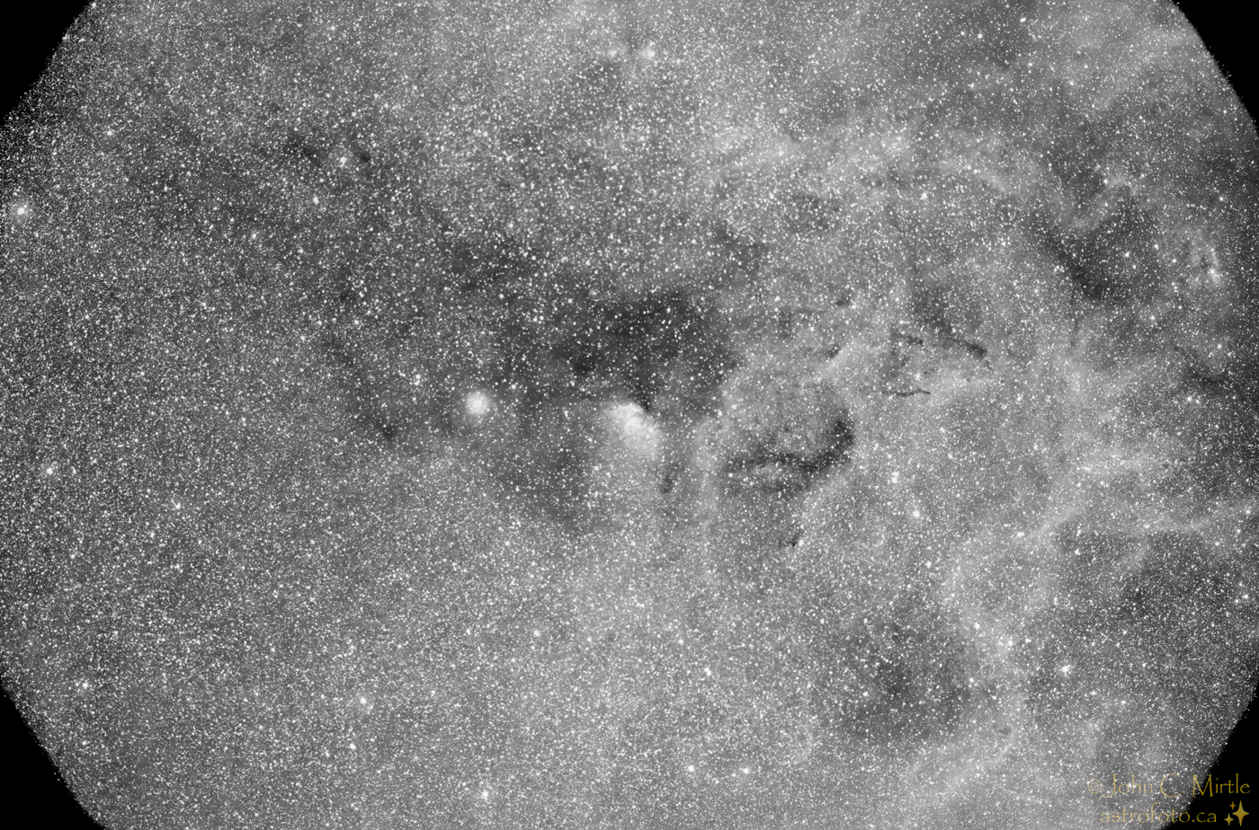 Description: Dark Nebulae Barnard 146 and 147, emission nebula Sh2-101 in Cygnus. Also known as The Tulip Nebula.