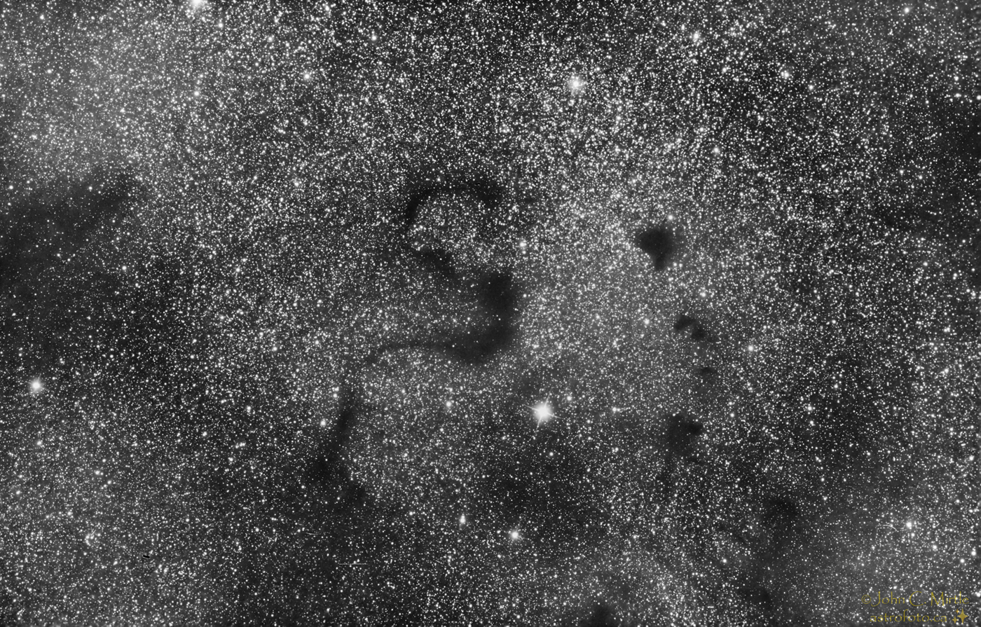 "bowl" of the Pipe Nebula. The dark nebula on the right side, from top