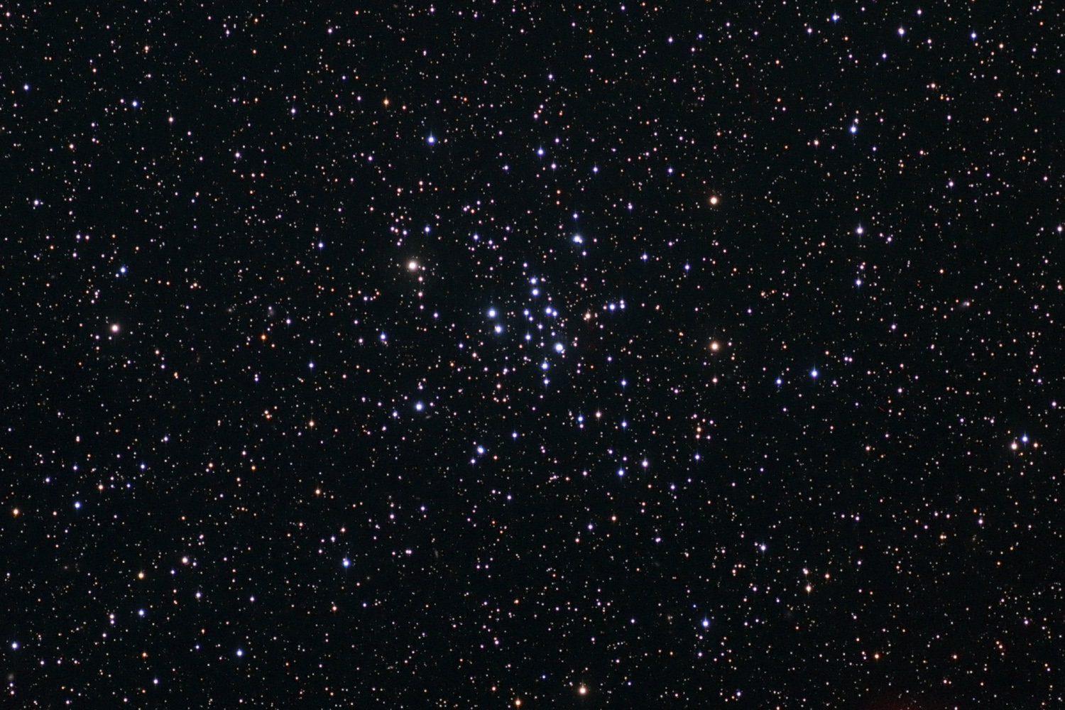 This intermediate aged open cluster of about 100 stars (according to H.S. Hogg) lies about 1,400 light years and is scattered over 35 arc minutes, more than the diameter of the full Moon. This angular diameter corresponds to a linear 14 light years; Wallenquist has estimated a little more (42' corresponding to 18.5 light years).