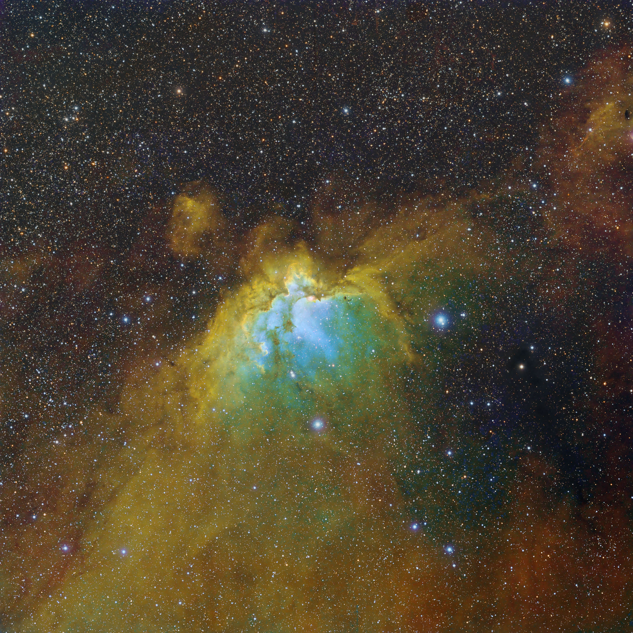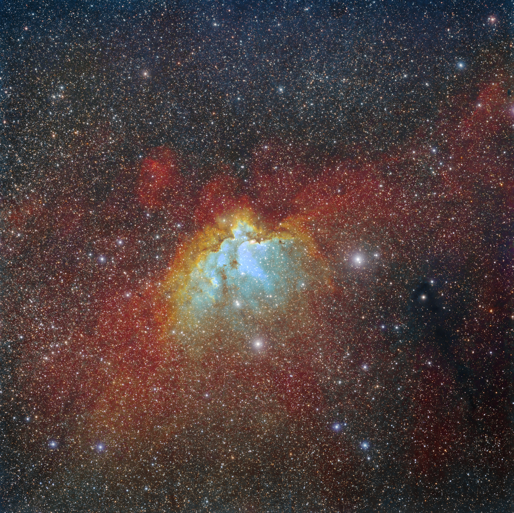 Exposures: Red: 12x10min; Green and Blue: 14x10min; H-Alpha: 39 x 20 min, SII: 39 x 20 min, OIII: 34 x 20 min